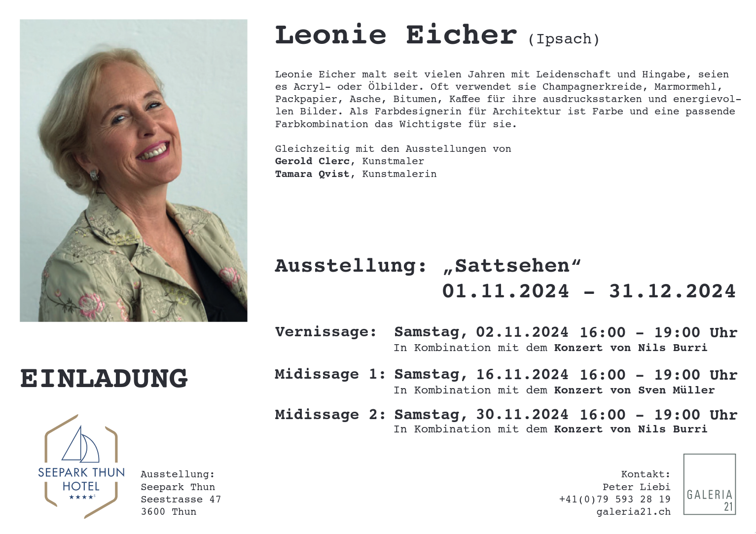 vom 11.08.2023-08.09.2023 in der Galeria 21 und zusätzlich im Restaurant Stadthaus in Nidau